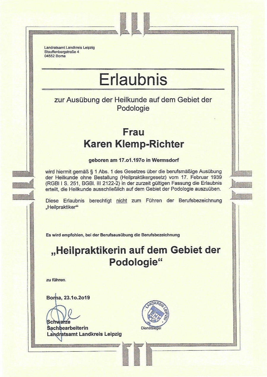 Heilpraktikerbehandlung im Fachbereich Podologie: